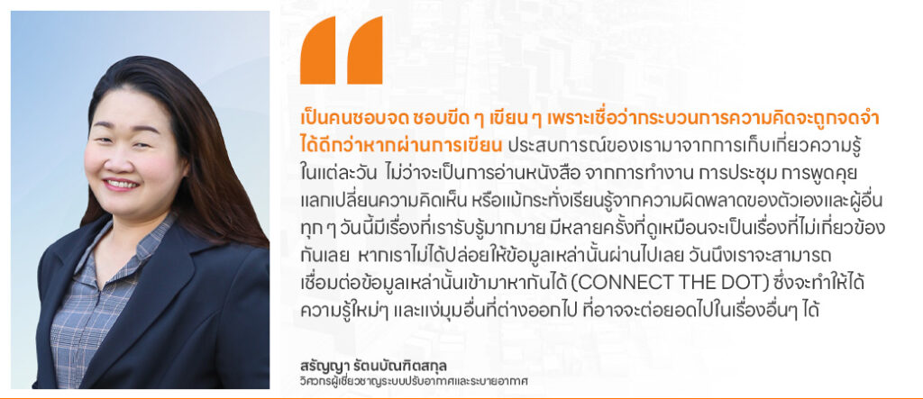 Views: 19 อาจารย์สรัญญา รัตนบัณฑิตสกุล Saranya Rattanabanditsakun ปัจจุบัน • ผู้ช่วยกรรมการผู้จัดการ บริษัท อีอีซี เอ็นจิเนียริ่ง เน็ทเวิร์ค จำกัด การศึกษา • วศ.บ.(เครื่องกล) สถาบันเทคโนโลยีนานาชาติสิรินธร มหาวิทยาลัยธรรมศาสตร์ • วุฒิวิศวกร สาขาวิศวกรรมเครื่องกล เลขทะเบียน วท. 1061 • LEED AP (BD+C) • TREES – A Project Highlight • โครงการพัฒนาเพื่อเพิ่มขีดความสามารถทำอากาศยานกรุงเทพฯ ดอนเมือง • ศูนย์ซ่อนบำรุงรถโฟฟ้าได้ดิน (MRTA-Depot Workshop) • อาคารเรียนรวมและหอพักนักศึกษาพยอาคาร บริษัท รับสัมสัมปทานการเดินรถไฟฟ้าใต้ดิน (BMCL - Admin & Canteen) • โรงพิมพ์รนปัตรแห่งที่สอดและระบบสนับสนุนเครื่องจักร (ส่วนที่ 1,2)HAMAD MEDICALCITY, Us:inAm1501 • IP Natural Product Factory, ฉะเชิงเทรา • HARN Office Building [DGNB-GOLD] • MEDINA CENTRALE AT THE PEARL(CP/5-15-1), Us:mm11507 • อาคารอเนกประสงค์ สถานีวิทยุโทรทัศน์กองทัพบก ช่อง 5 • MAGNOLIAS RATCHADAMRI BOULERVARD, [LEED NC-Certified] • WALDORF ASTORIA BANGKOK HOTEL,[LEED NC-Certified] • THE REEF ISLAND, ประเทศบาร์เรน • อาคารศูนย์คอมพิวเตอร์ AIS แก่นนคร • DISTRICT CHILLER PLANT 2 โรงพยาบาลกรุงเทพ • ROSEWOOD BANGKOK HOTEL • อาคารสำนักงาน บ.ธนารักษ์พัฒนาสินทรัพรัพย์ (รพส.)[DGNB - Platinum] • TRUE DIGITAL PARK, PHASE 1[LEED/TREE CS - GOLD) • TRUE DIGITAL PARK, PHASE 2(WELL/TREES CS - GOLD) • RESEARCH & INNOVATION FOR SUSTAINABILITYCENTER - RISC [WELL-GOLD] • WHIZDOM CONNECT [TREES-GOLD] • WHIZDOM INSPIRE [TREES-GOLD] • ปรับปรุงโรงพยาบาลกรุงเทพ ซ.ศูนย์วิจัย • ปรับปรุง TRADERS HOTEL YANGON, ประเทศพม่า